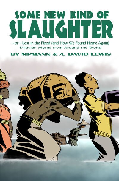 Exploring generations of flood myths from all walks of society, mpMann and A. David Lewis brought to life the gorgeous miniseries Some New Kind of Slaughter, or Lost in the Flood (and How We Found Home Again). That’s a heckuva title, but the art and story live up to it. Now that series has been collected in one volume from Archaia Studios Press. Here, Lewis talks about how he and mpMann (real name Marvin Perry Mann) came to meet and work together, what inspired this new book, and what brought about this particular tale of flood myths thoughout history.