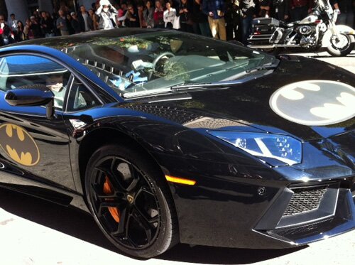 Batkid arrives in the Batmobile