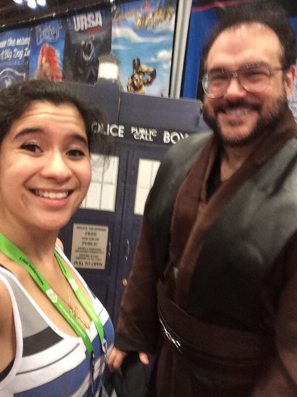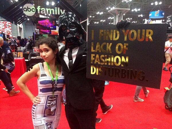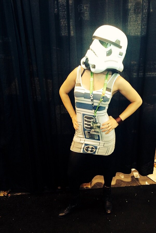 [From top to bottom: Maya with Erica Henderson, creator of the The Unbeatable Squirrel Girl; R2-DToo Cute!; Maya fraternizes with the enemy; Maya with Dr. Travis Langley, author of WALKING DEAD PSYCHOLOGY/STAR WARS PSYCHOLOGY; Maya with Katie Cook, from MY LITTLE PONY: Friendship is Magic and the webcomic Gronk; Maya with Ana Matronic, former Scissor Sister and author of ROBOT UNIVERSE; Maya with Vish Singh, creator of the documentary “Red, White, and Beard”; the force is strong with this one.]