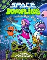 It’s important that cartoonists focus on work for younger readers or, more importantly, readers of all ages. Think of what Pixar does with movies. The emotion and silliness in movies like Inside Out makes parents want to engage with the culture their kids are consuming. Unfortunately, SPACE DUMPLINS talks down to its readers with a saccharine message of family and sacrifice and even pretensions of spirituality. Though it’s unrelentingly silly, the world Thompson’s built here is the best part, a nonsense dystopia of food- and feces-obsessed refugees living in space. Spaceships shaped like food and animals, planet-sized masses of trash floating in space---this should be fun. Instead, it gets mired in flat characters and episodes of self-seriousness so out of place they read like they’re from a different book. If only they were.